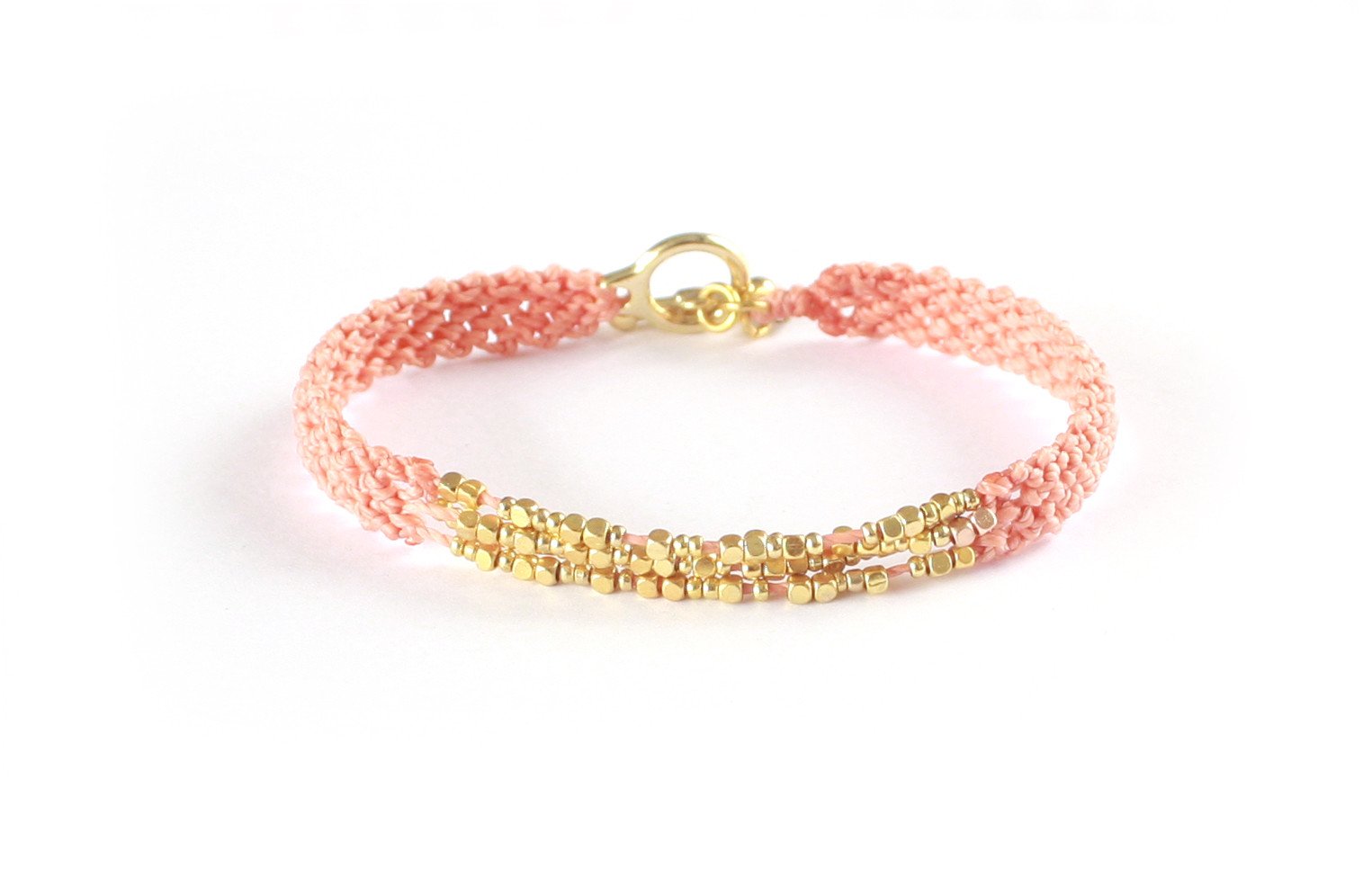 - Woven with waxed polyester thread, glass beads and zinc alloy metals