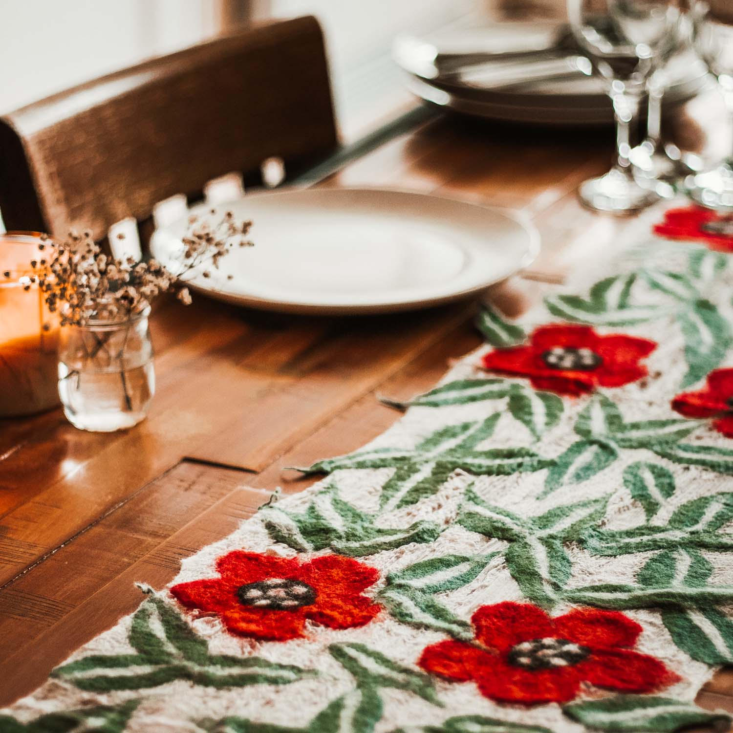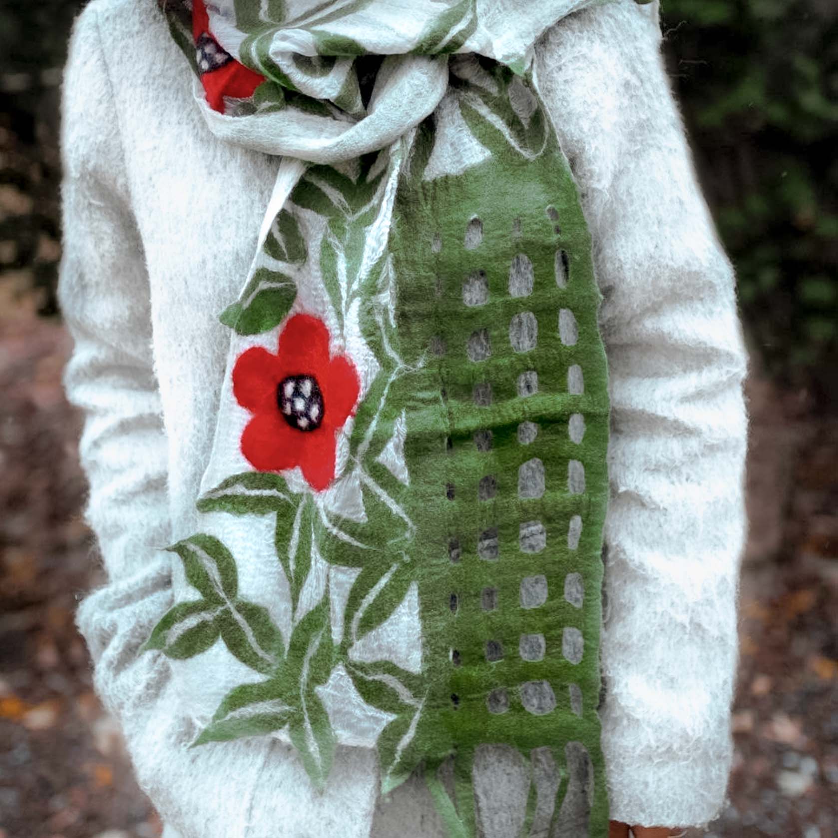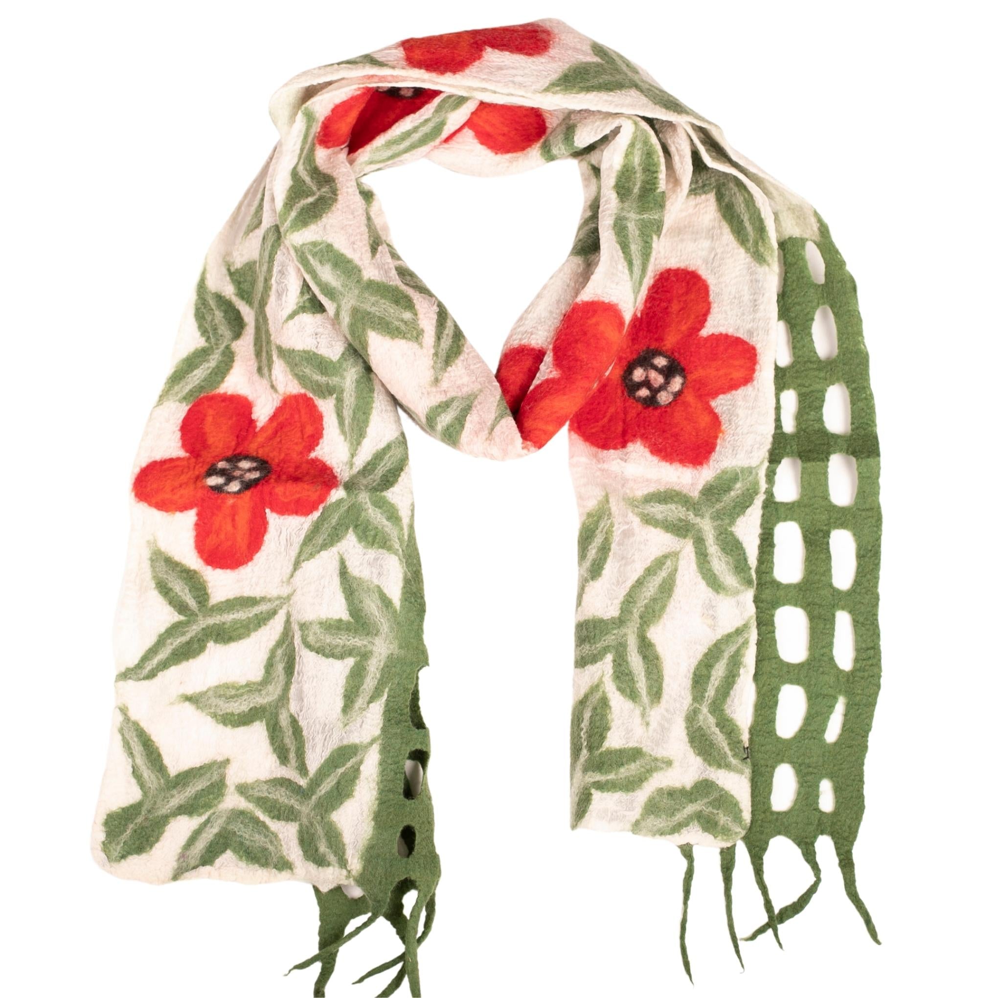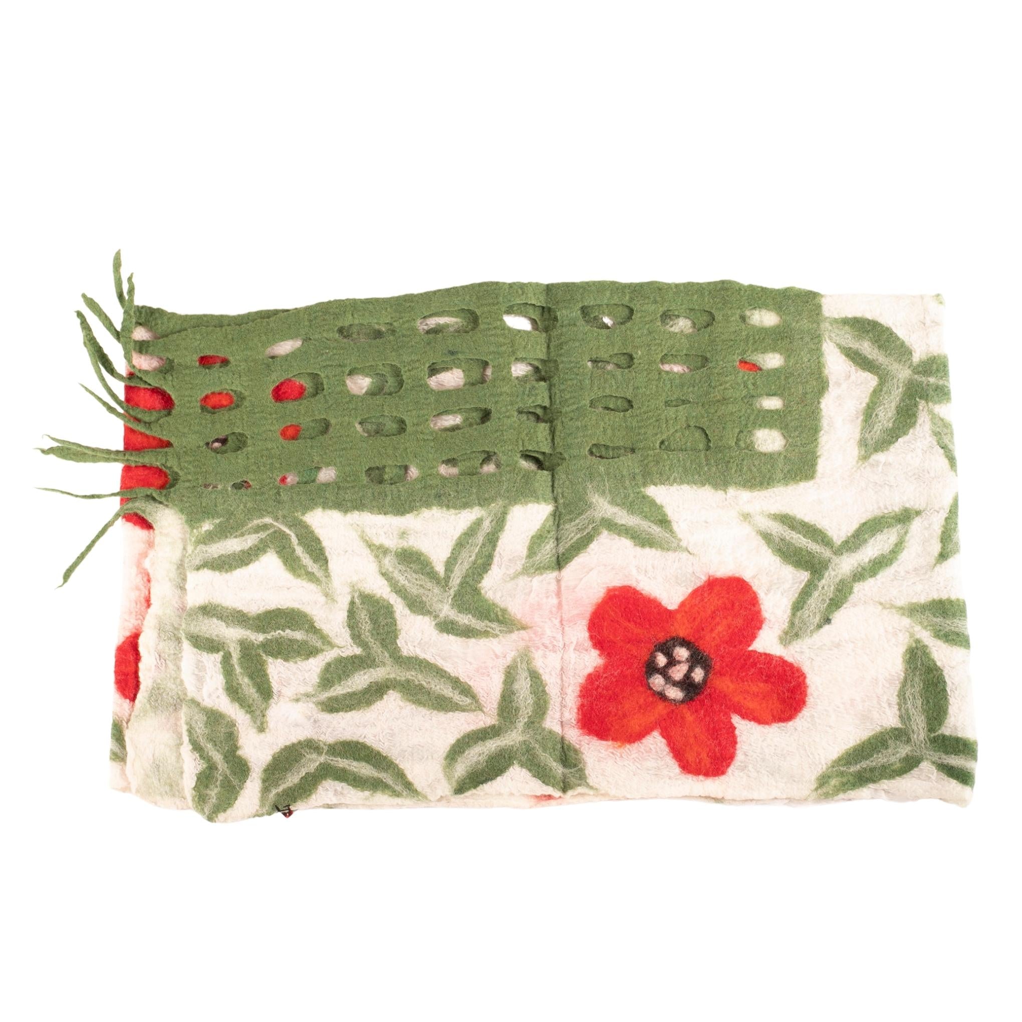 Feutré à la main à Nepa par des artisans talentueux. Peut être porté comme une écharpe, la touche finale idéale à votre garde-robe d'automne ou Fonctionne également comme un beau chemin de table.