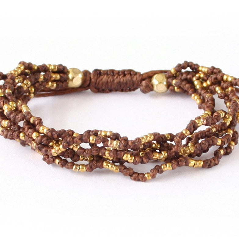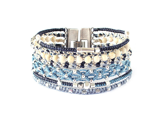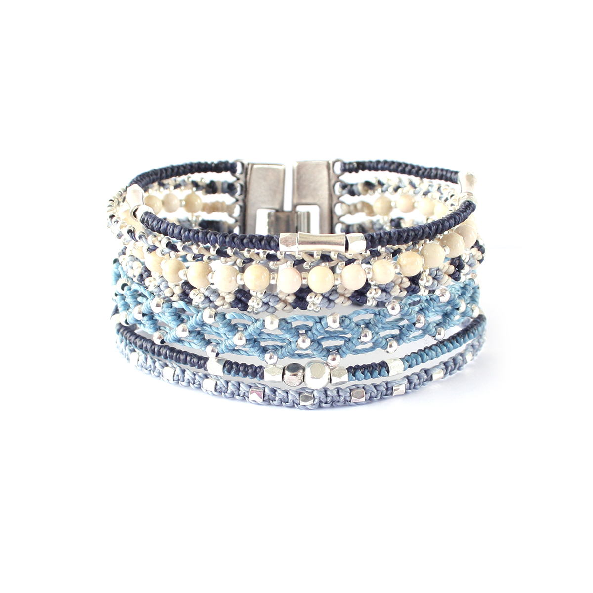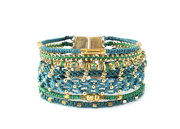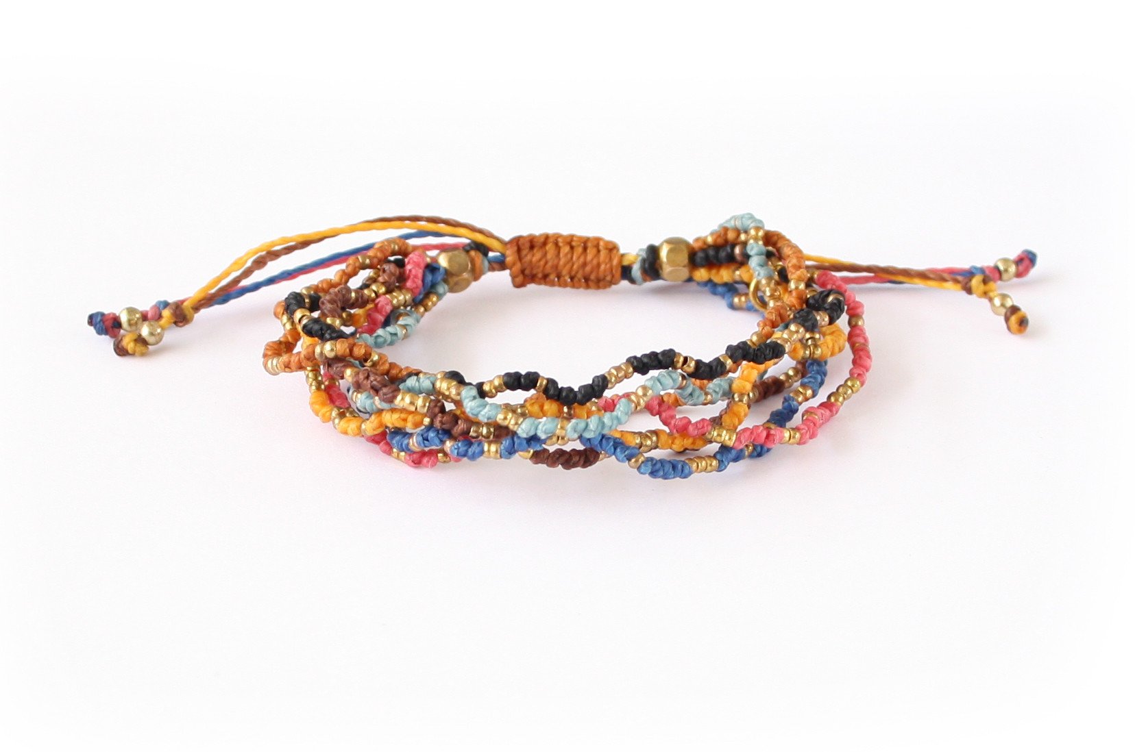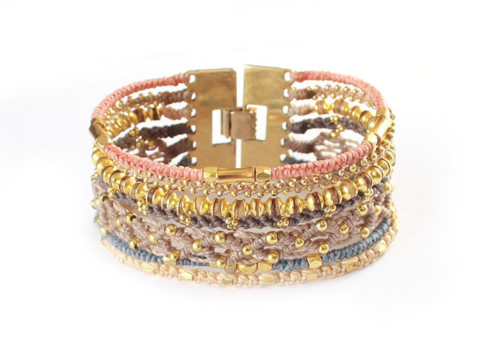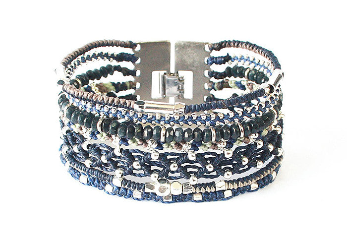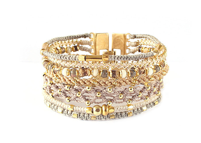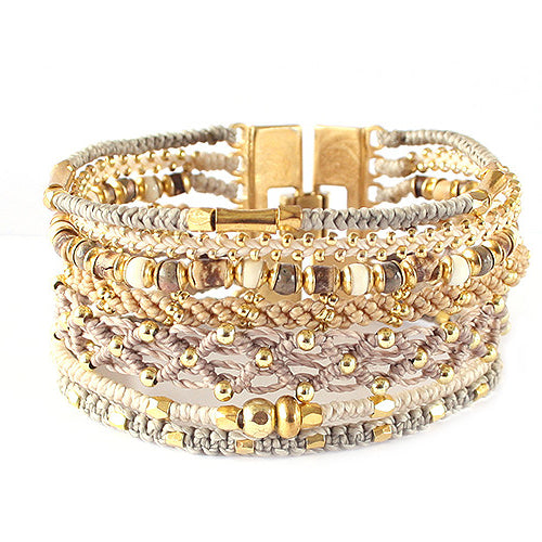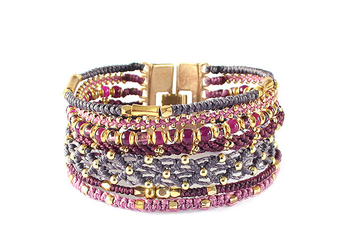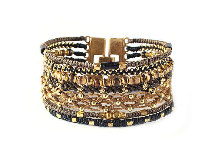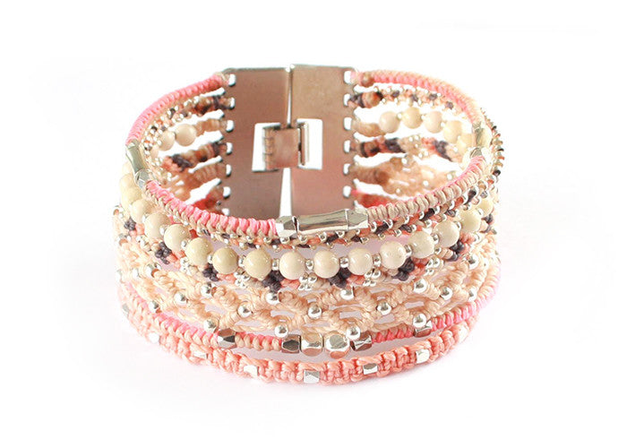 - Tissé avec du fil de polyester ciré, des perles de verre et des métaux en alliage de zinc
