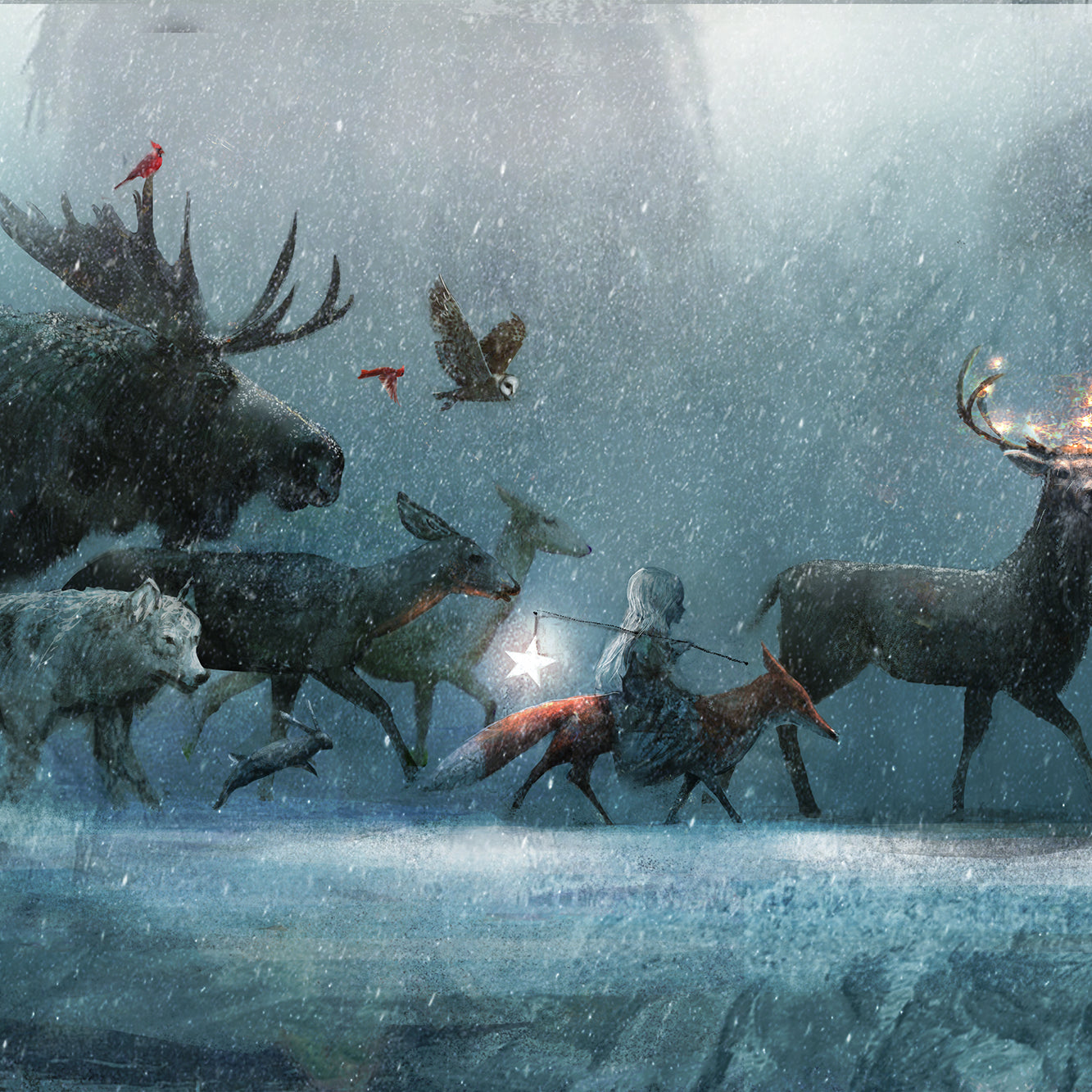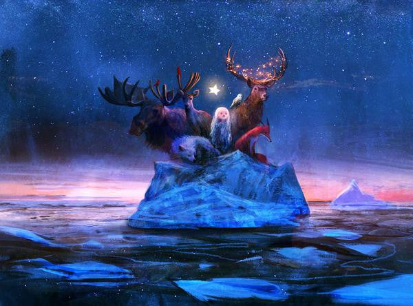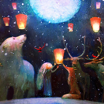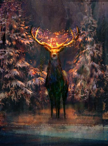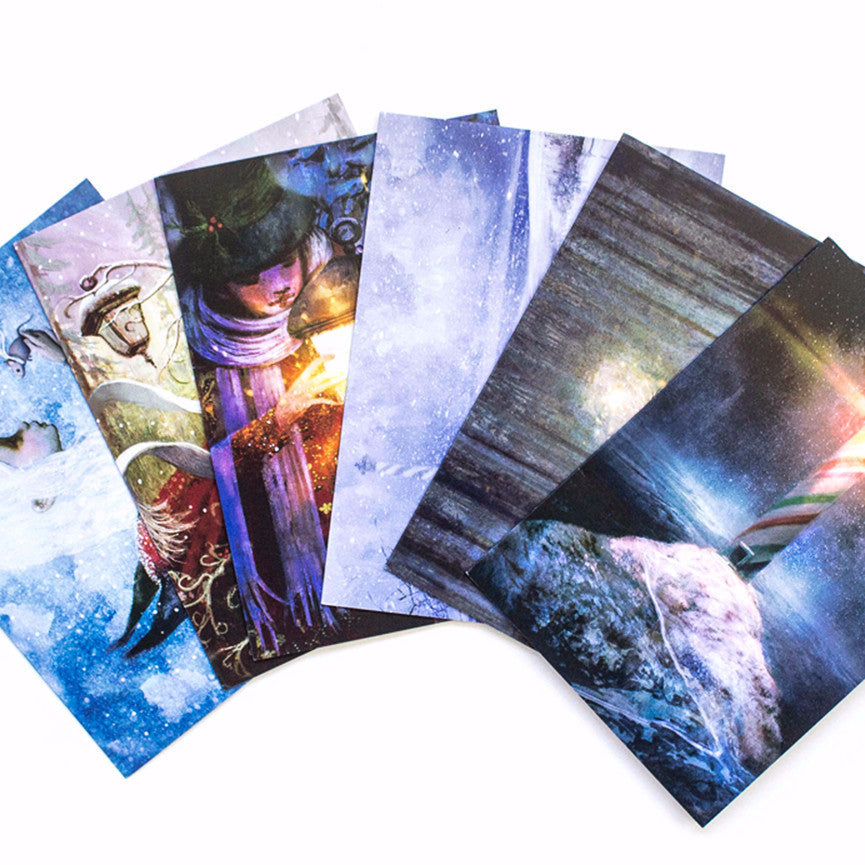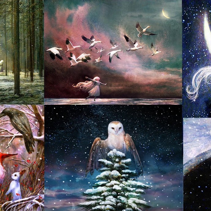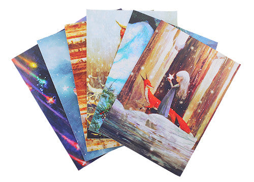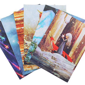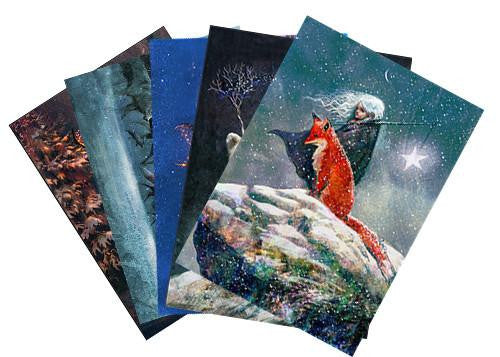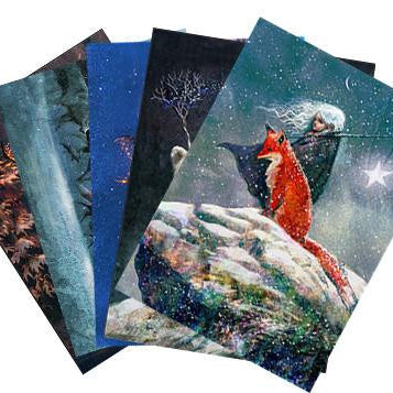 Cartes de vœux comportant des peintures numériques originales « Midnight Seer », « Earth Unicorn », « Unique Friendship » et « Enchanted Stag » de Sam McKinnon.