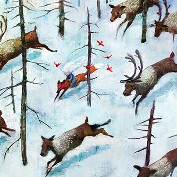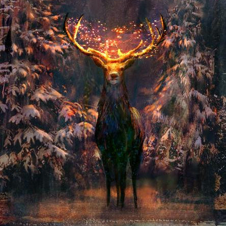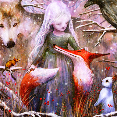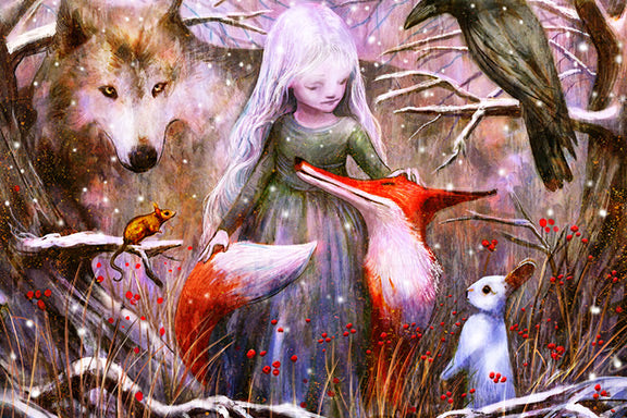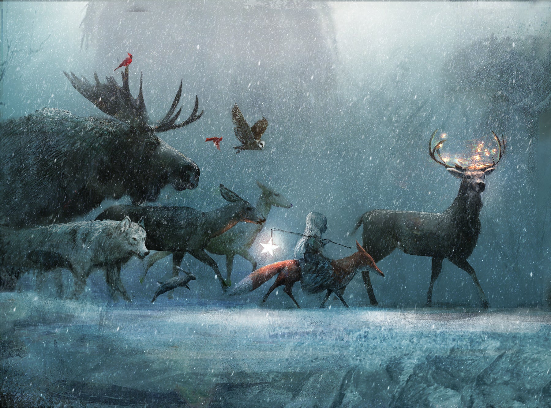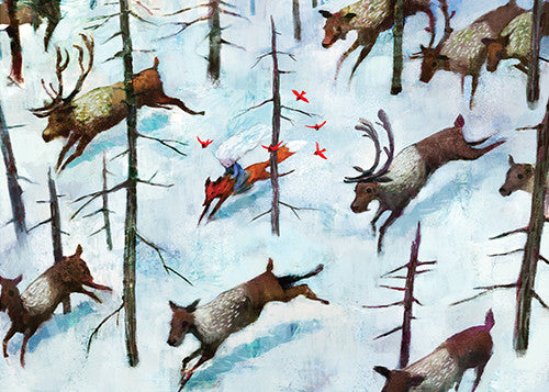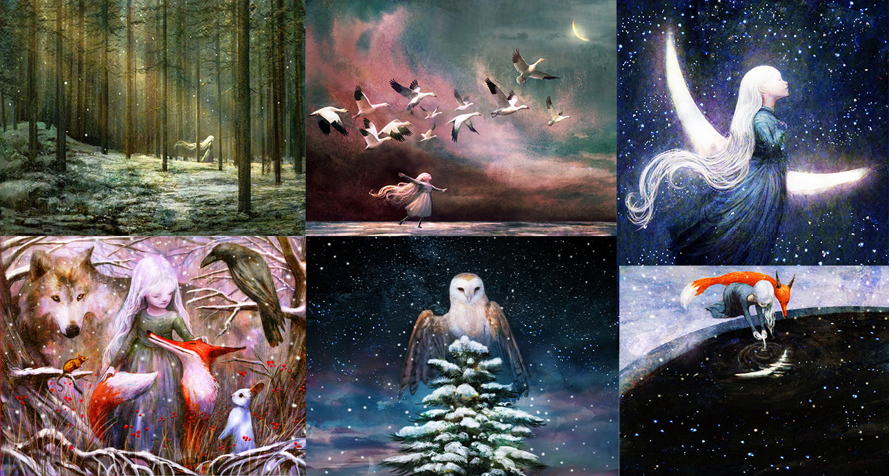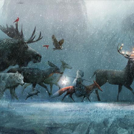Cartes de vœux comportant des peintures numériques originales « Midnight Seer », « Earth Unicorn », « Unique Friendship » et « Enchanted Stag » de Sam McKinnon.