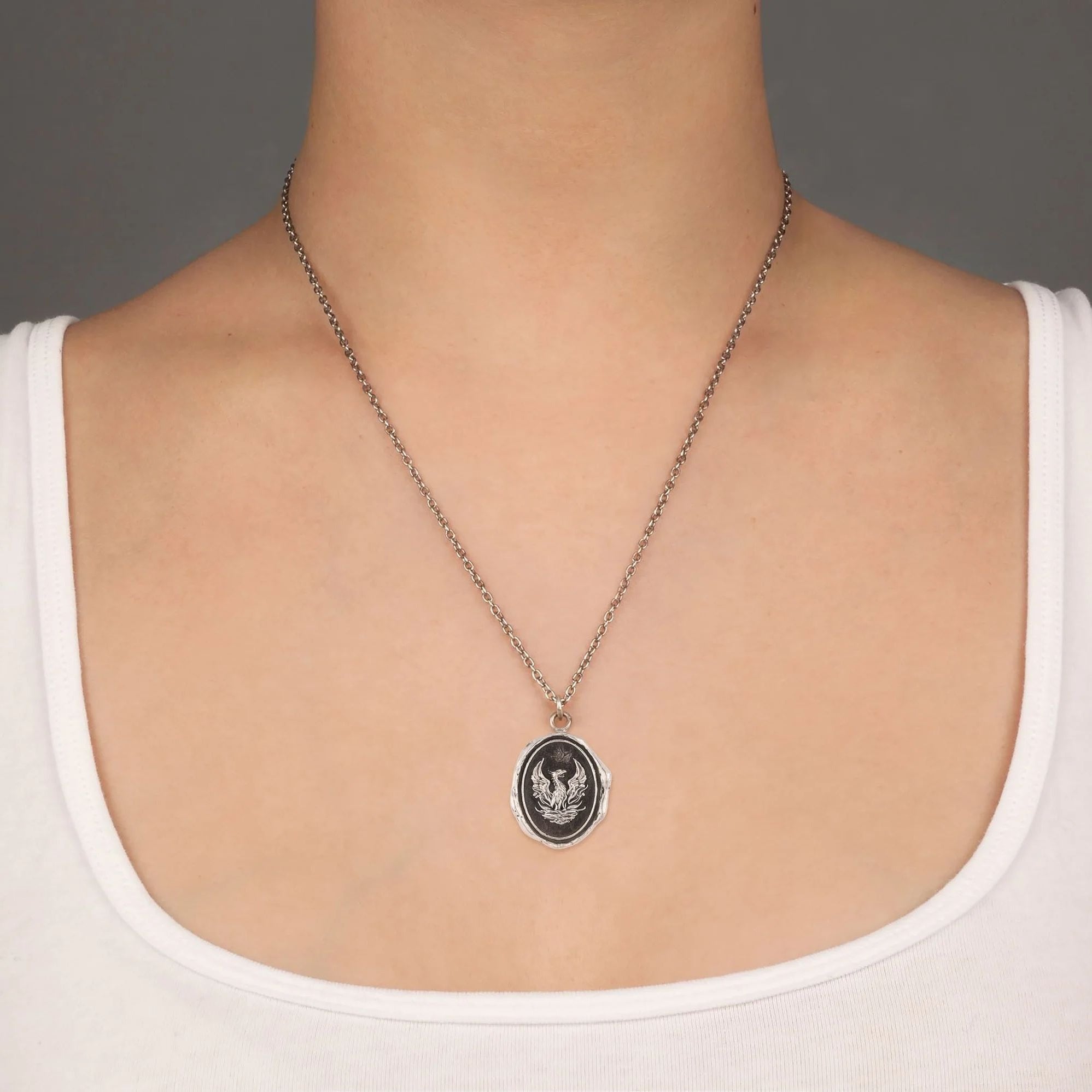 - Sterling silver chain and lobster clasp with Pyrrha branded quality tag