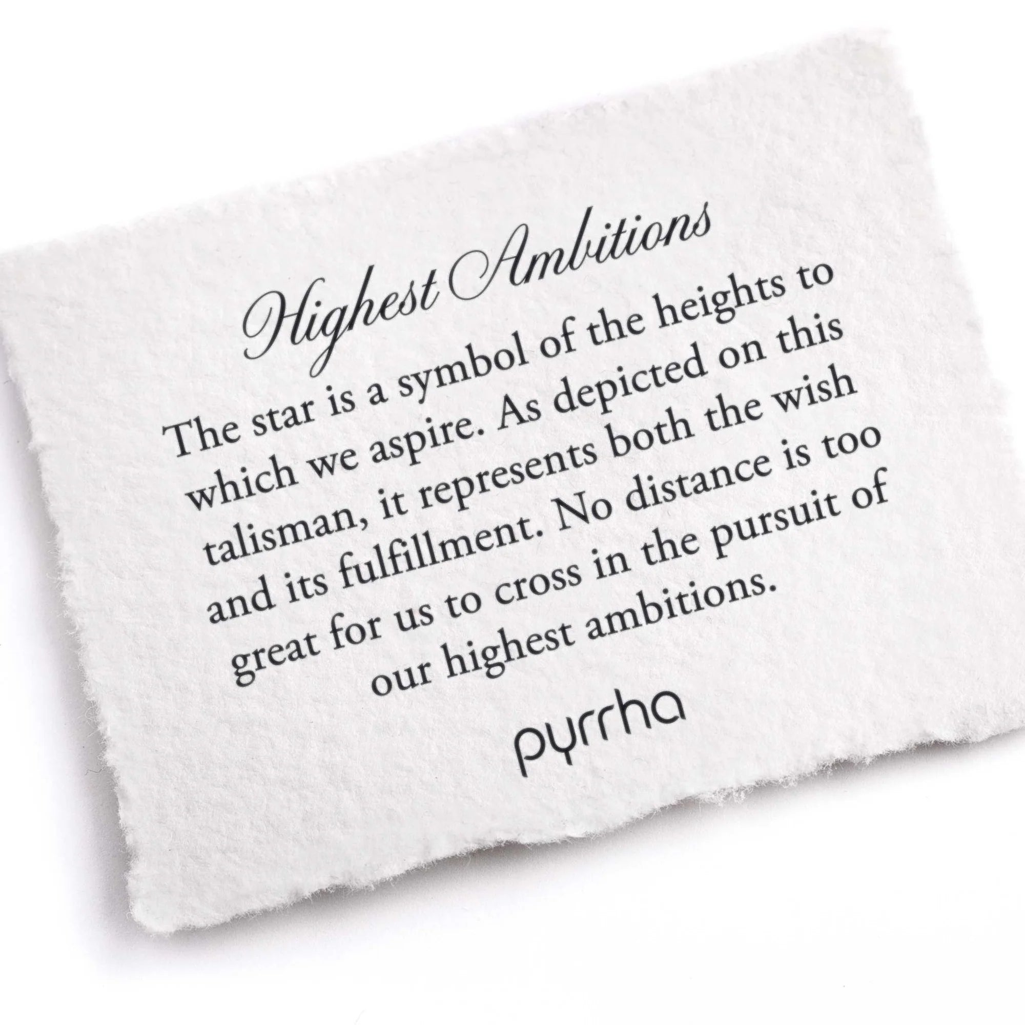L'étoile est un symbole des hauteurs auxquelles nous aspirons. Tel que représenté sur ce talisman, il représente à la fois le souhait et sa réalisation. Aucune distance n’est trop grande à franchir dans la poursuite de nos plus hautes ambitions.