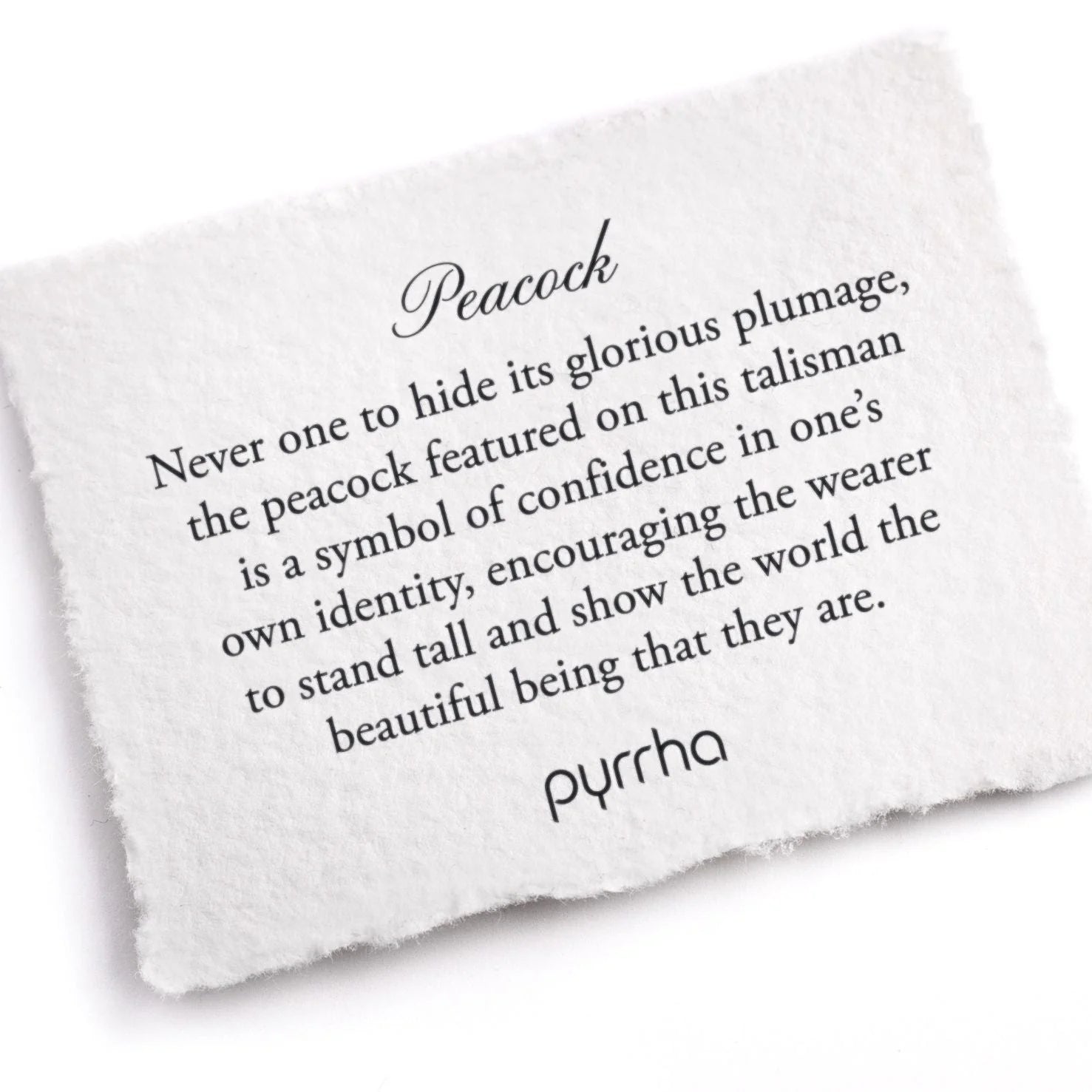 Jamais du genre à cacher son glorieux plumage, le paon présenté sur ce talisman est un symbole de confiance en sa propre identité, encourageant celui qui le porte à se tenir droit et à montrer au monde l'être magnifique qu'il est.