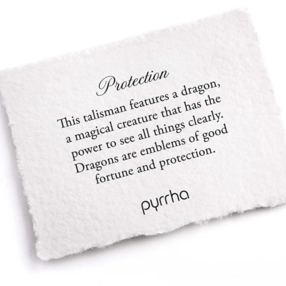This talisman features a dragon, a magical creature that has the power to see all things clearly. Dragons are emblems of good fortune and protection.