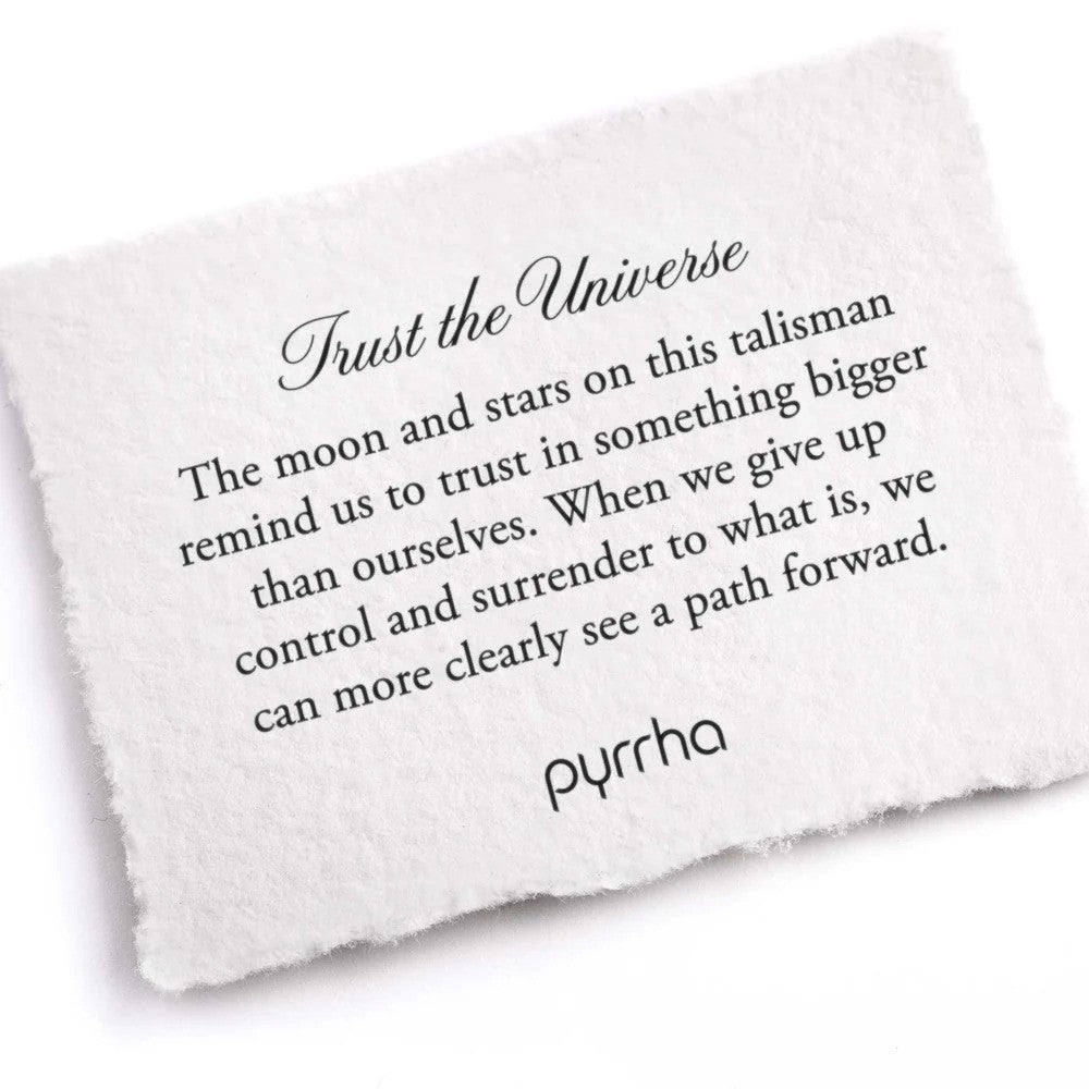 The moon and stars on this talisman remind us to trust in something bigger than ourselves. When we give up control and surrender to what is, we can more clearly see a path forward.