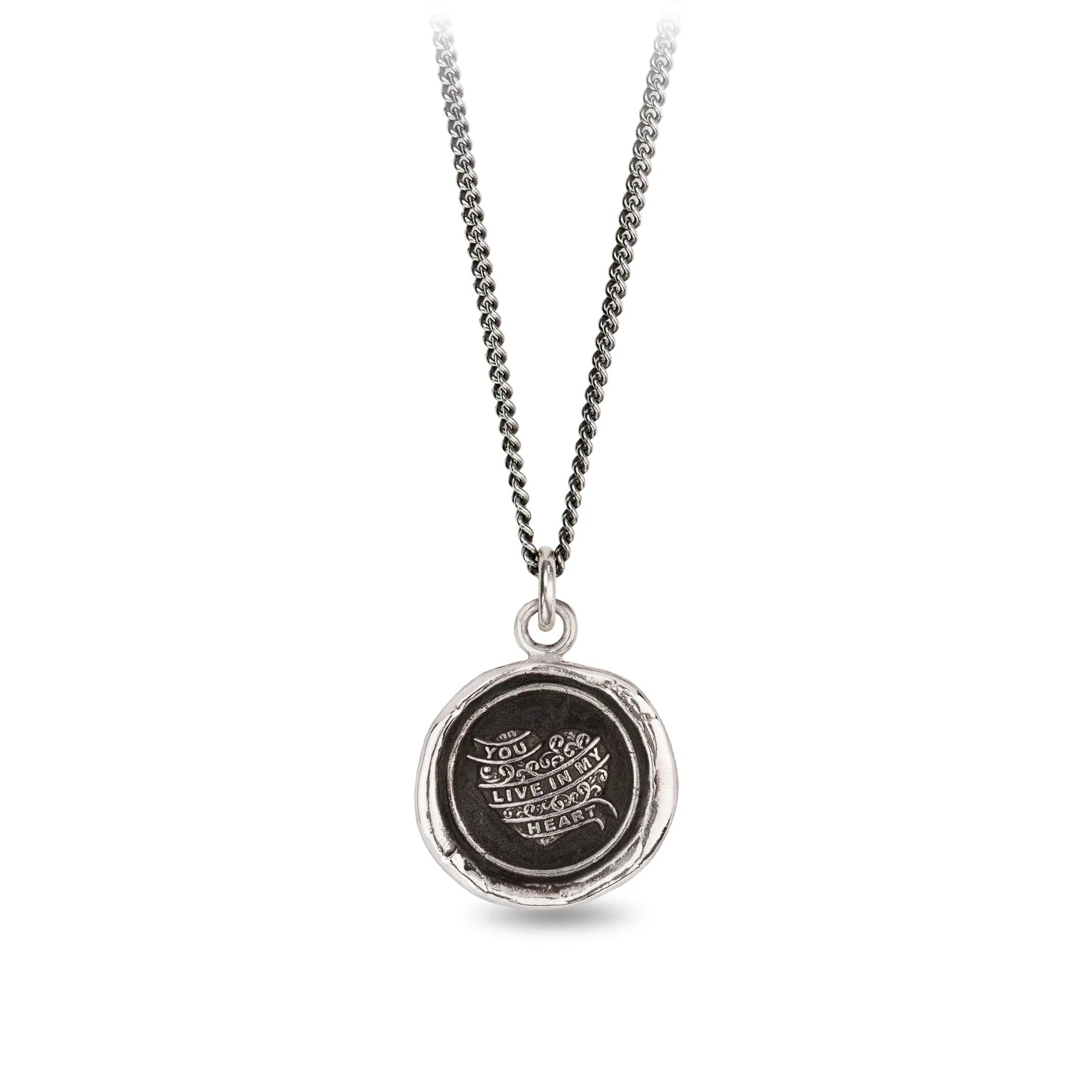 Expression ultime de l'amour, le cœur enveloppé d'un ruban figurant sur ce talisman indique « Tu vis dans mon cœur ». Il indique à nos proches que même lorsqu'ils ne sont pas physiquement présents, nous les portons avec nous.