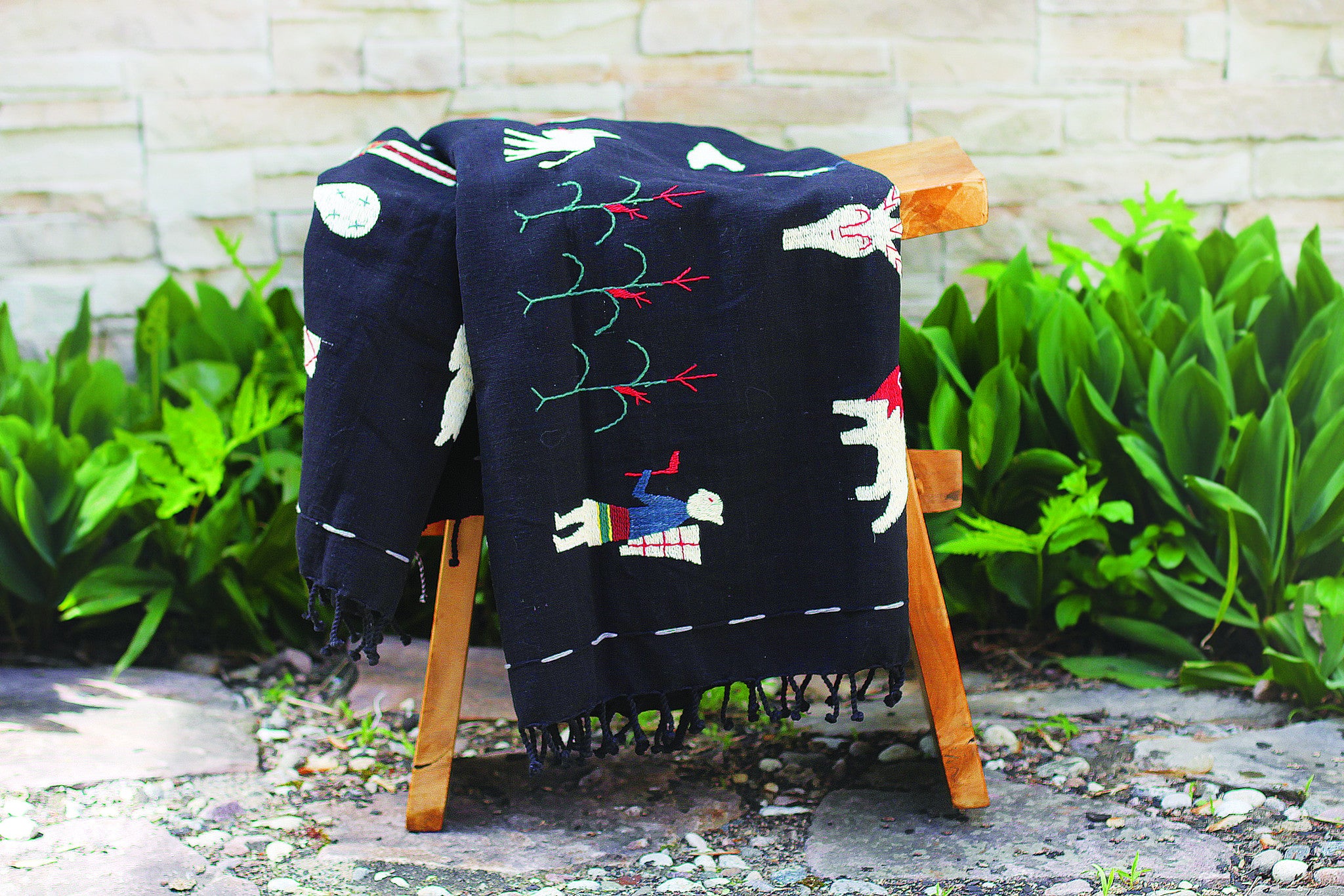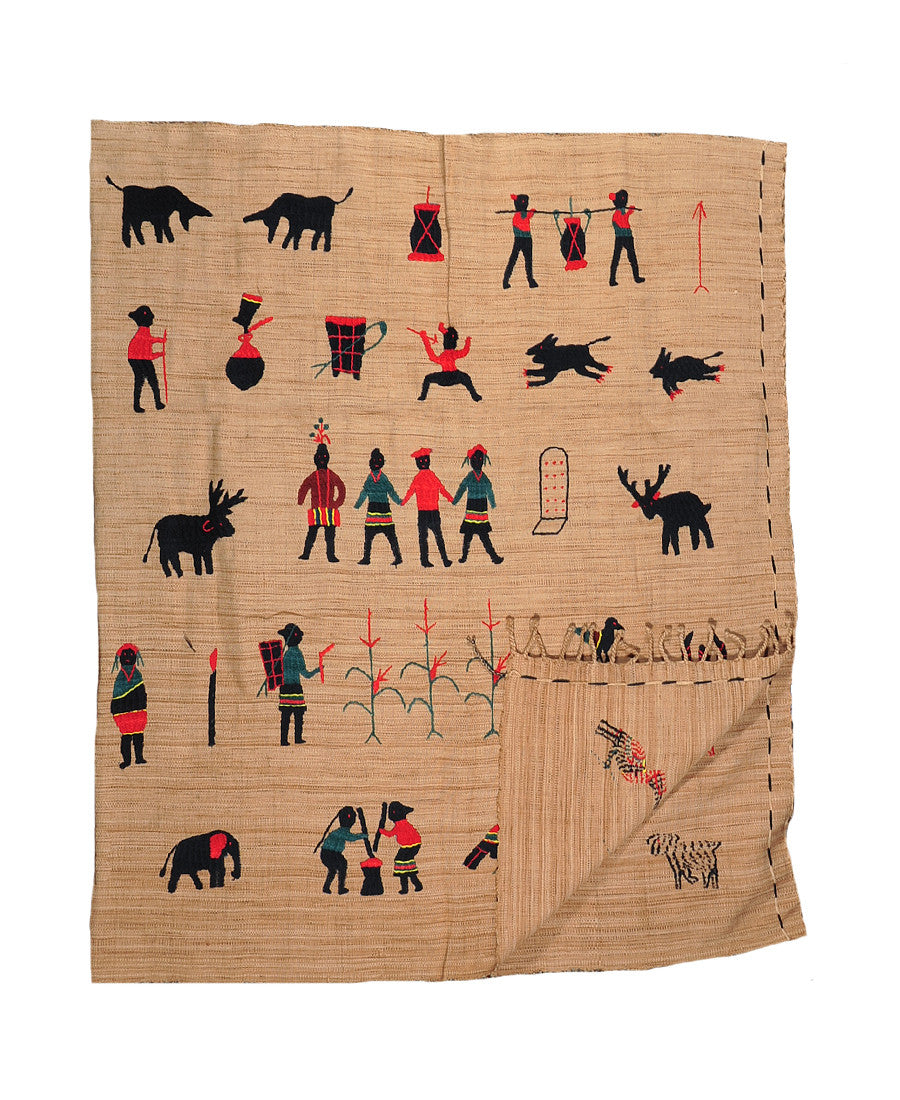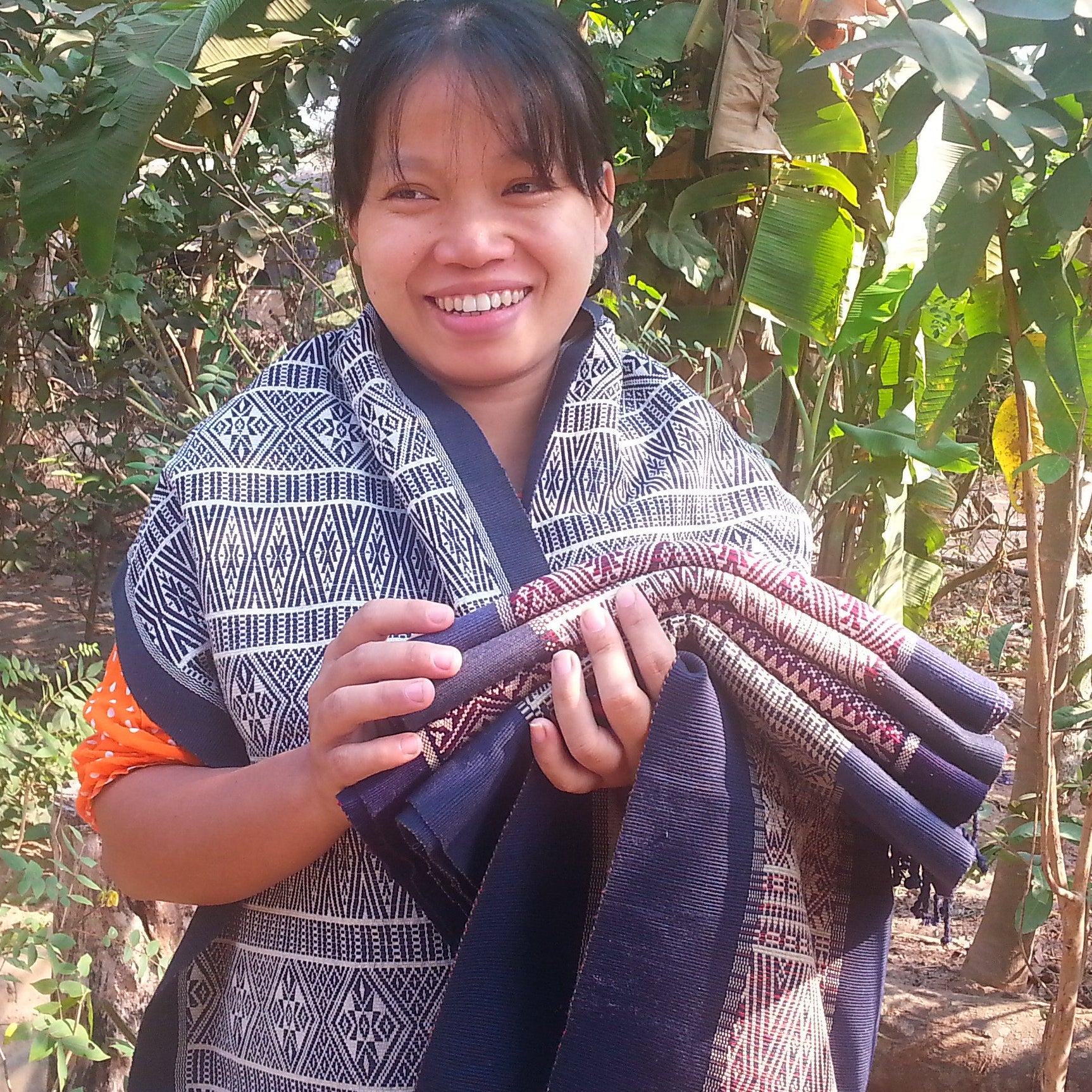 Spécialisé dans les textiles ethnographiques, ce plaid est tissé par des femmes artisans du Myanmar à partir de coton pur à l'aide d'un métier à tisser à sangle arrière. Yoyamay soutient des groupes de tisserands – environ 200 tisserands au total – dispersés dans l'État Chin du Sud . Certains d'entre eux tissent chez eux tandis que d'autres se rassemblent à un endroit et tissent.