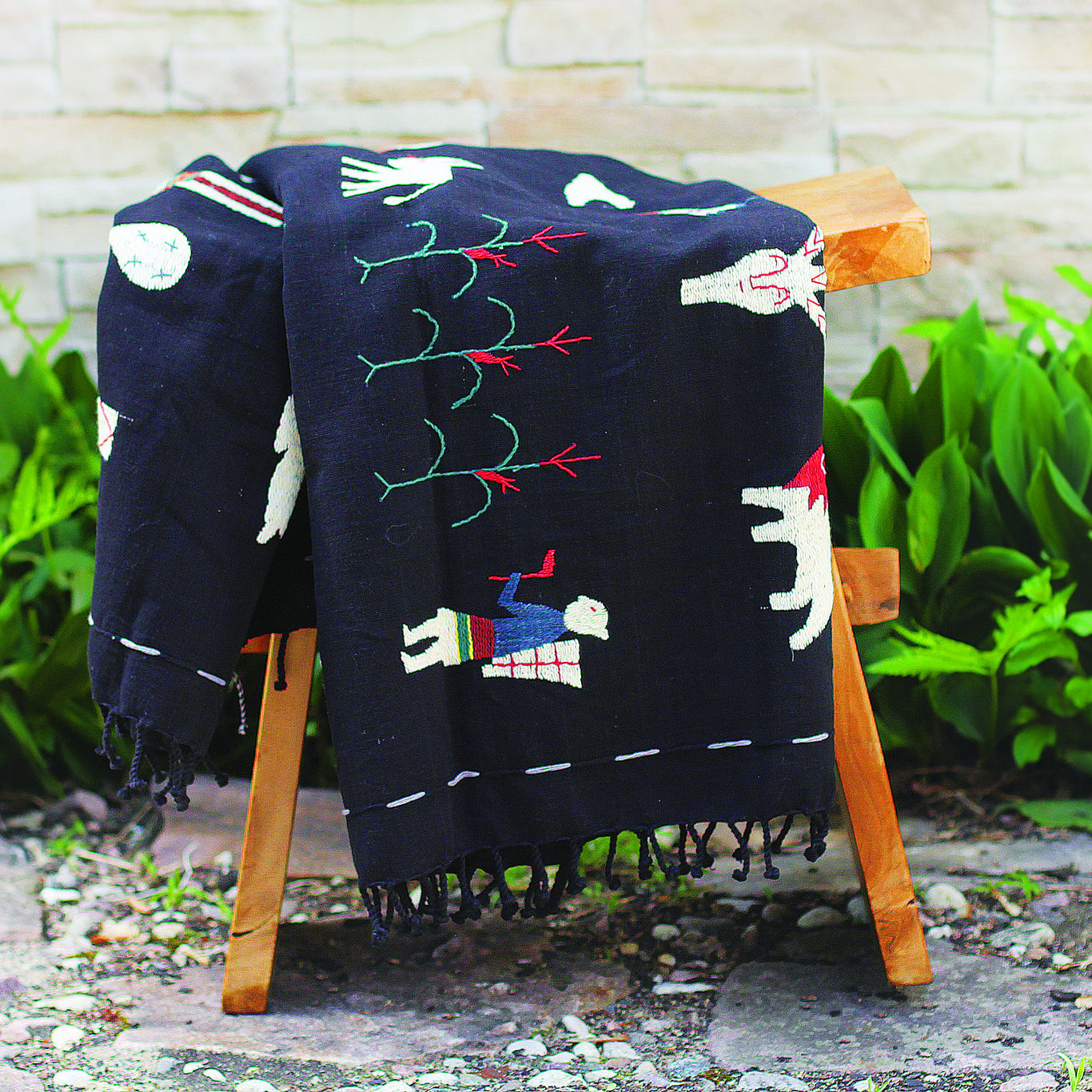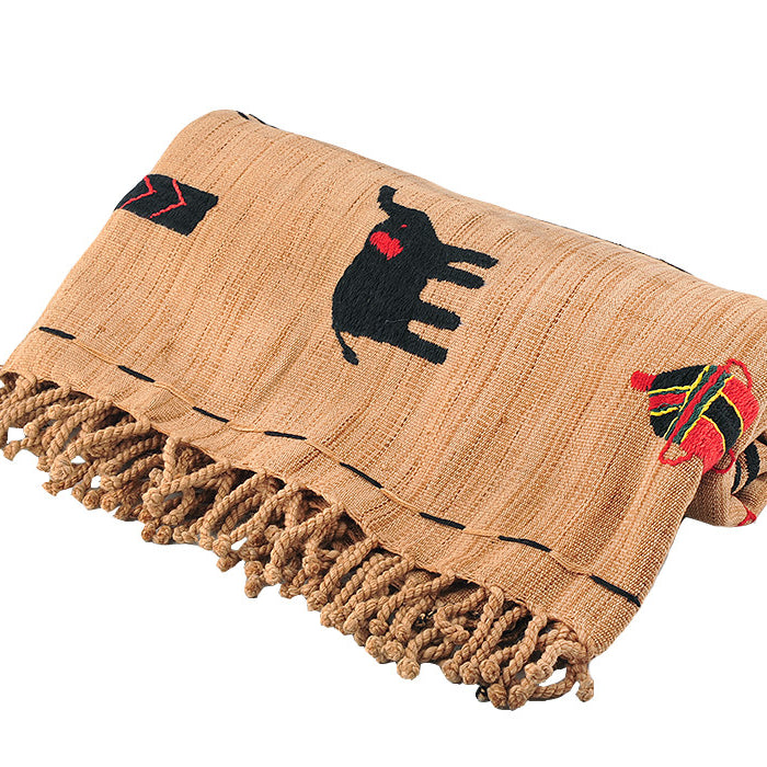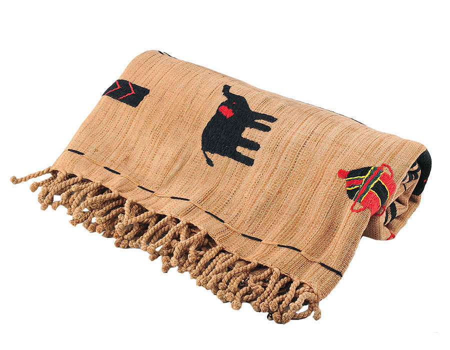 Spécialisé dans les textiles ethnographiques, ce plaid est tissé par des femmes artisans du Myanmar à partir de coton pur à l'aide d'un métier à tisser à sangle arrière.